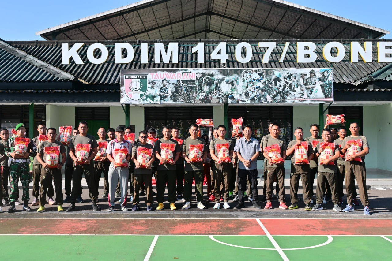 Jumat Berkah di Makodim 1407/Bone, Dandim Laode Muhammad Idrus Tebar Kepedulian Lewat Puluhan Karung Beras