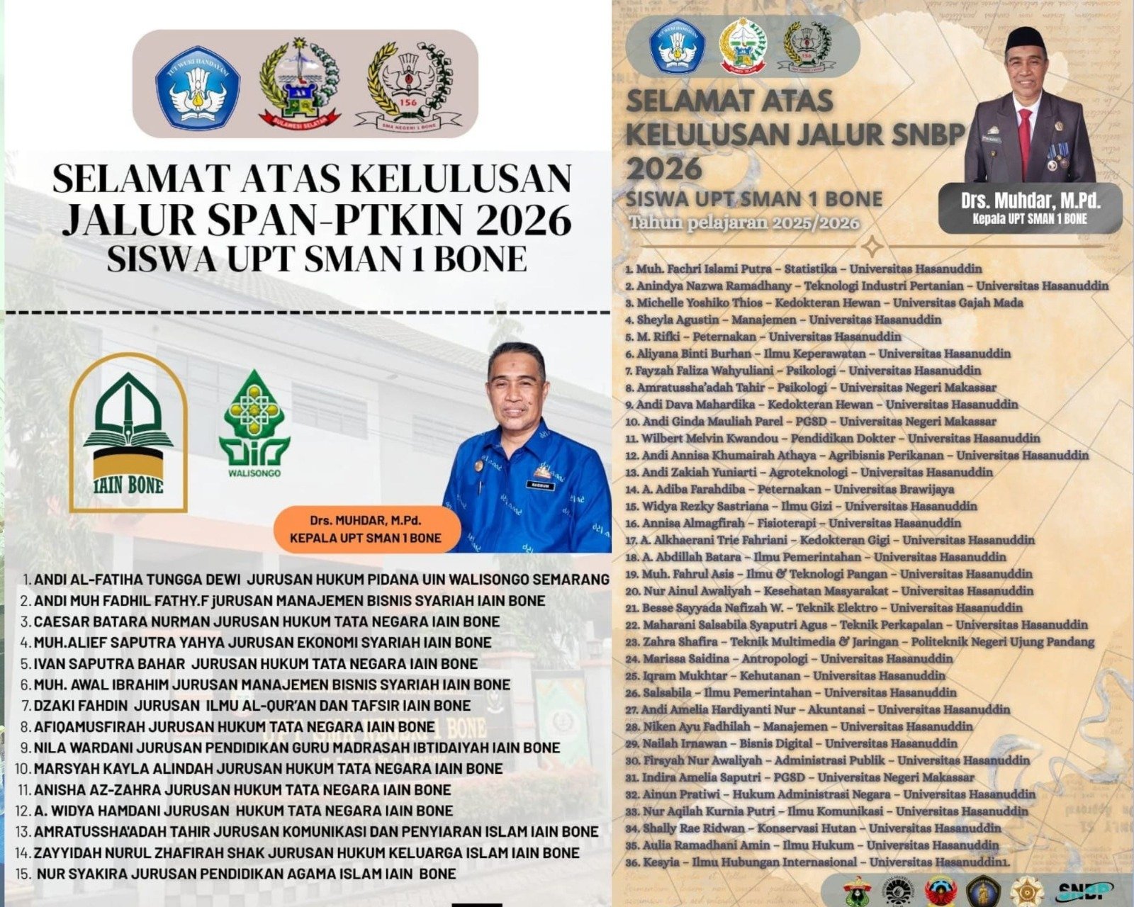 Sekolah Andalan Andi Sudirman Sulaiman Kembali Berjaya: Di Bawah Kepemimpinan Muhdar, SMAN 1 Bone Loloskan 51 Siswa ke PTN Tanpa Tes, Empat Tembus Fakultas Kedokteran