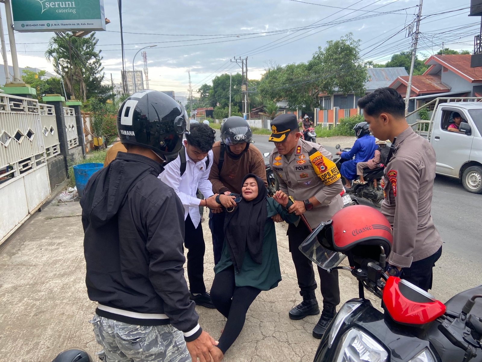 BONE–Kapolres Bone, AKBP Erwin Syah, S.I.K., M.H., menunjukkan kepedulian dan tanggung jawabnya terhadap masyarakat dengan sigap membantu korban kecelakaan lalu lintas di Jalan M.H. Thamrin, Kelurahan Ta, Kecamatan Tanete Riattang, Kabupaten Bone Senin, 30 Desember 2024. Kejadian itu berlangsung pada Senin pagi ketika beliau sedang dalam perjalanan menuju Mapolres Bone.