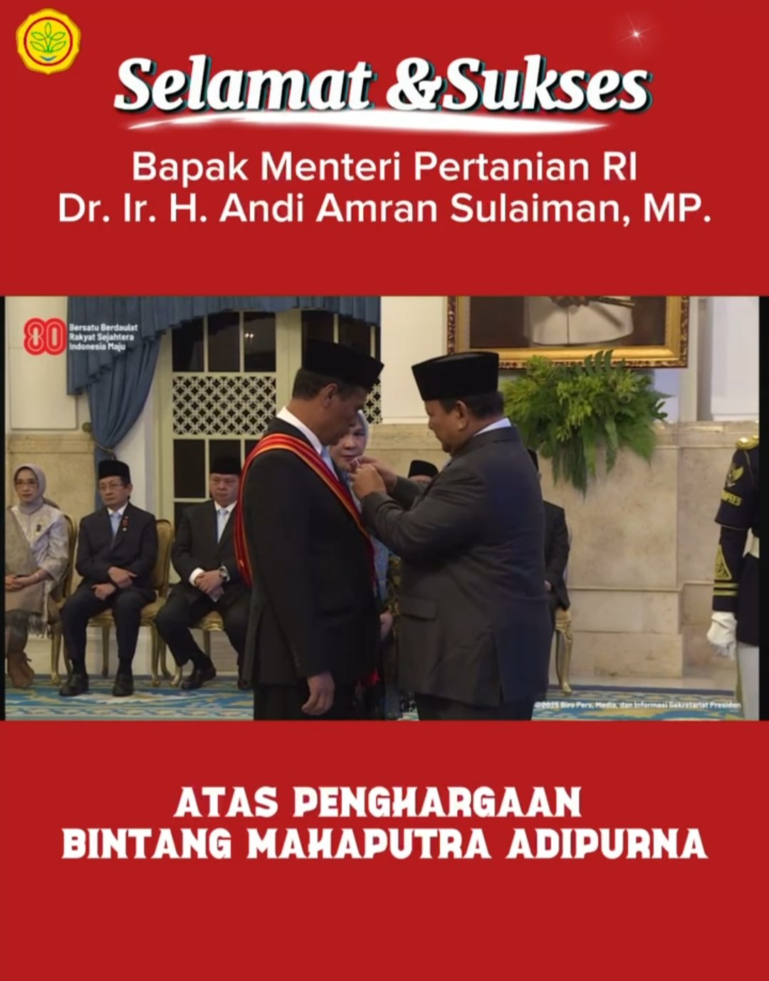 Penghargaan tersebut tidak diberikan sembarangan. Bintang Mahaputra Adipurna merupakan tanda kehormatan kelas tertinggi yang biasanya hanya melekat pada Presiden dan Wakil Presiden RI. Namun, kali ini, penghargaan tersebut dianugerahkan kepada Amran atas jasa luar biasa di bidang pertanian sebuah sektor yang menjadi denyut kehidupan bangsa.