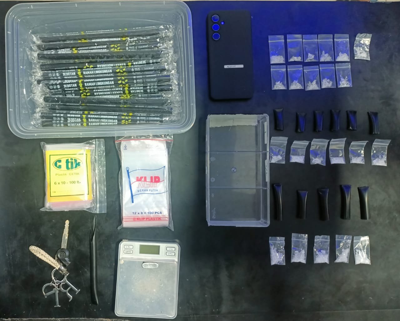 Dari hasil pemeriksaan handphone pelaku, polisi menemukan percakapan WhatsApp dengan akun bernama “Hiyaris” yang mengarahkan ABP mengambil paket sabu di pinggir jalan Kelurahan Corawalie, Kecamatan Barebbo. Menindaklanjuti informasi itu, tim bergerak cepat ke lokasi dan berhasil mengamankan sekitar 30 sachet sabu siap edar yang dibungkus dalam potongan pipet plastik hitam. Barang haram tersebut rencananya akan diedarkan di wilayah Kota Watampone melalui sistem “tempel” — tanpa pertemuan langsung antara penjual dan pembeli.