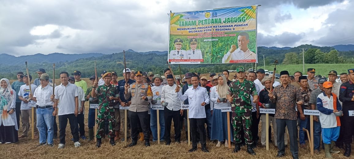 Tanpa menunda waktu, di hari pertama puasa, Sabtu (1/3/2025), Bupati Bone bersama unsur Forum Komunikasi Pimpinan Daerah (Forkopimda) Kabupaten Bone melaksanakan tanam perdana jagung di lahan PTPN 1 Regional 8, Desa Mappesangka, Kecamatan Ponre. Kegiatan ini merupakan langkah konkret dalam mendukung program ketahanan pangan.