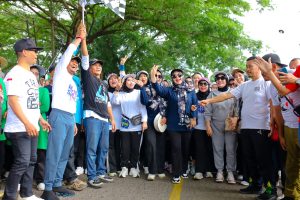 H. Andi Asman Sulaiman saat melepas peserta jalan anti mager dalam acara Harlah SMAN 5 Bone