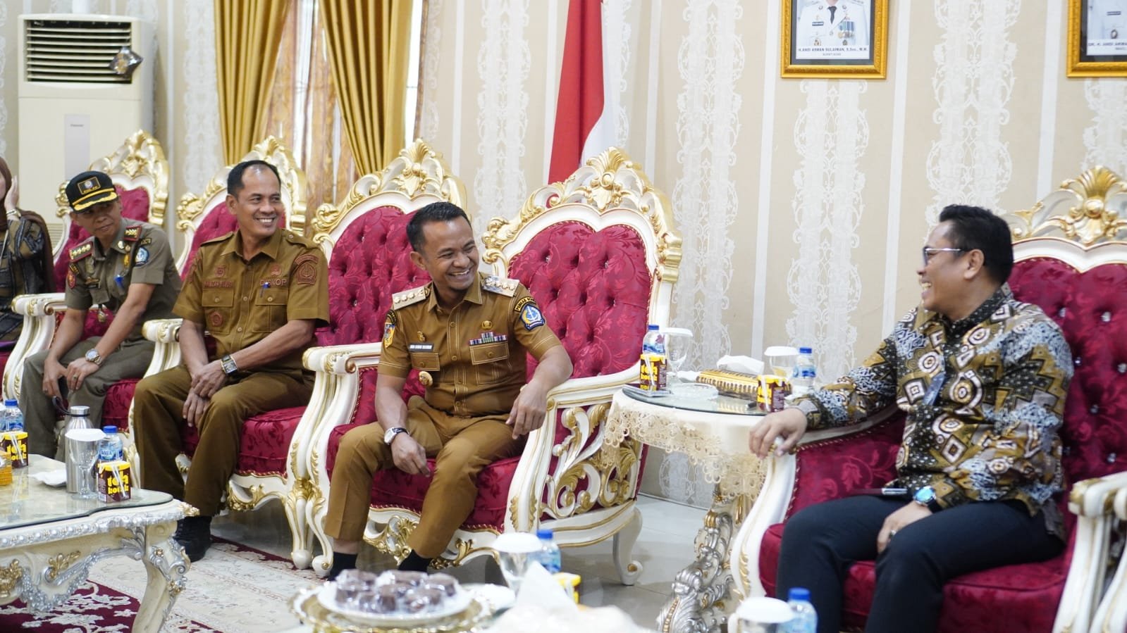 BONE–Suasana hangat dan penuh diskusi mewarnai kunjungan rombongan Kepala Cabang BRI Bone, Suryadi, di Rumah Jabatan Bupati Bone, Selasa (8/7/2025). Di ruang tamu berarsitektur Bugis itu, Bupati Bone H. Andi Asman Sulaiman, S.Sos., MM., menerima rombongan BRI dengan didampingi Kepala Dinas Koperasi Hamzah Sunusi serta Plt Kasatpol PP A. Baharudin.