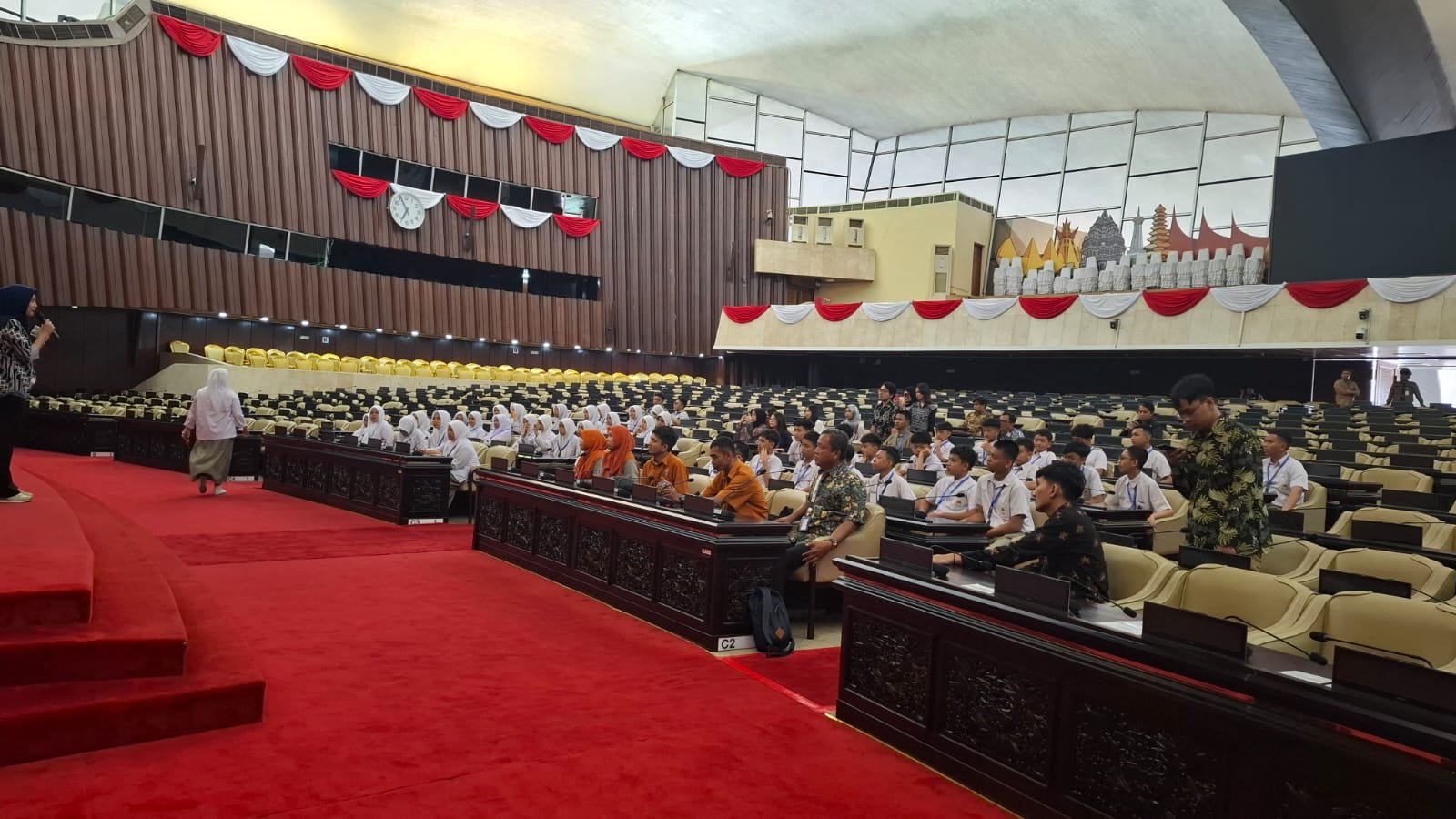 Pada hari kedua di Jakarta (10/1) rombongan yang berjumlah 51 orang tersebut tiba di Gedung DPR/MPR RI. Di gedung parlemen, mereka dipandu untuk menyaksikan dan mengamati beragam fasilitas dan kelengkapan prasarana yang ditempati oleh legislator RI.