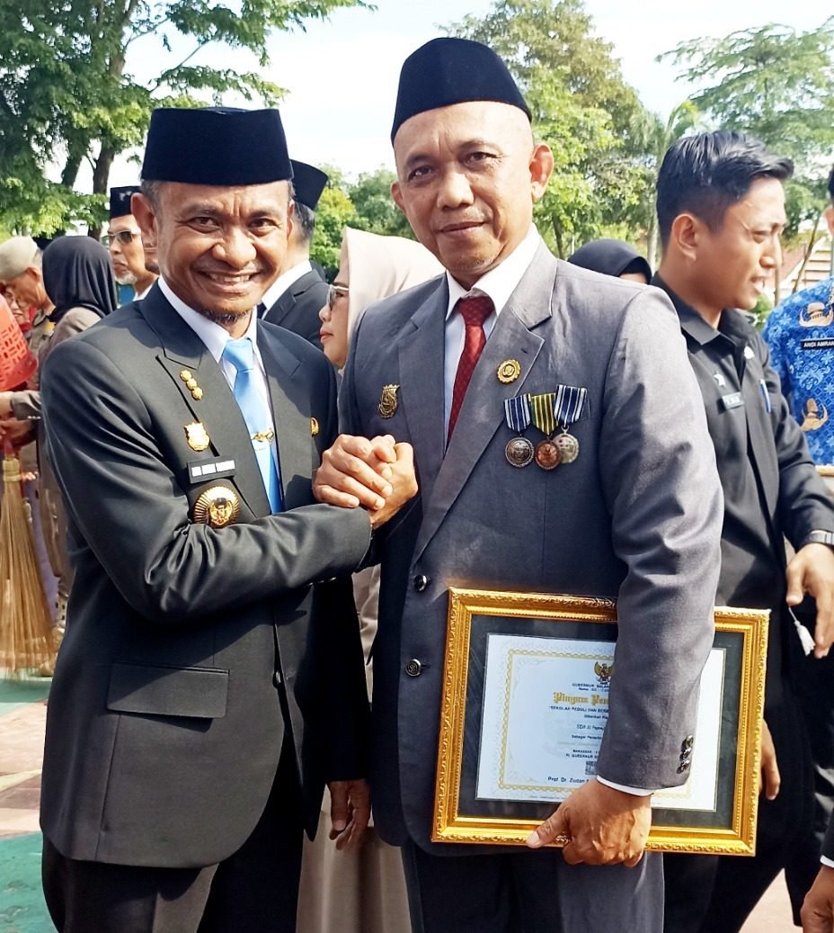 BONE–Momentum Hari Pendidikan Nasional (Hardiknas) tahun ini menjadi momen istimewa yang membanggakan bagi keluarga besar SMAN 15 Bone. Di tengah suasana peringatan Hardiknas yang berlangsung khidmat di Lapangan Merdeka Watampone, Jumat (2/5), satu nama dipanggil secara khusus untuk menerima apresiasi langsung dari Bupati Bone, H. Andi Asman Sulaiman, S.Sos., MM yaitu Kepala UPT SMAN 15 Bone, Muhammad Tang, S.Pd., M.Pd.