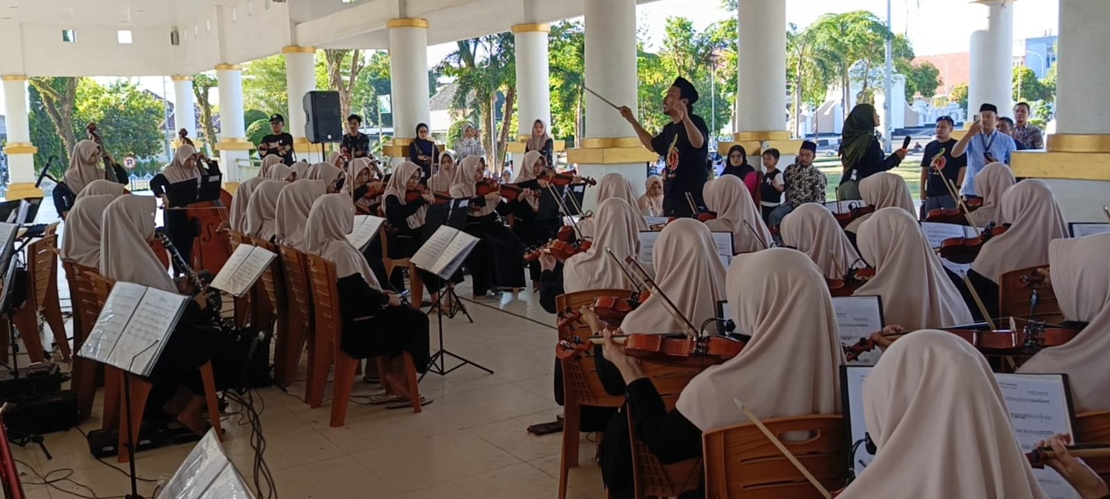BONE–Di tengah terik matahari yang menyengat di Lapangan Merdeka Watampone, alunan nada yang indah terdengar mengisi udara. Lebih dari seratus remaja dari berbagai sekolah dan latar belakang agama berkumpul. Bukan untuk berkompetisi, melainkan untuk menciptakan harmoni. Mereka adalah orkestra santri Al-Ikhlas dan paduan suara lintas agama yang sedang berlatih intensif.
