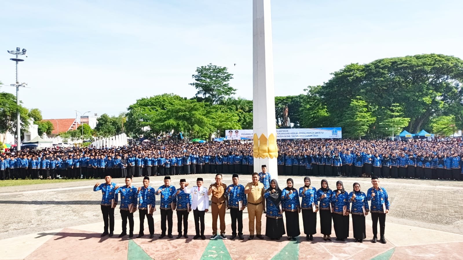 BONE– Lapangan Merdeka Watampone, Rabu, 24 Desember 2025, menjadi saksi perubahan besar dalam perjalanan hidup ribuan tenaga honorer di Kabupaten Bone. Di bawah langit akhir tahun, Bupati Bone H. Andi Asman Sulaiman, S.Sos., M.M bersama Wakil Bupati Bone Dr. H. Andi Akmal Pasluddin, M.M secara resmi menyerahkan Surat Keputusan (SK) Pegawai Pemerintah dengan Perjanjian Kerja (PPPK) Paruh Waktu kepada ribuan penerima.