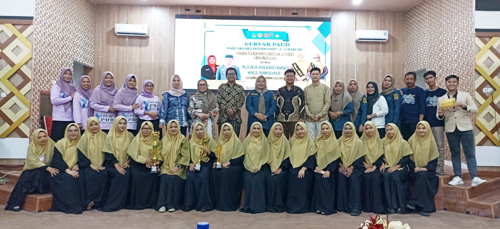 BONE–Aula Kantor Dinas Pendidikan Kabupaten Bone menjadi saksi semaraknya Lomba Shalawatan antar tenaga pendidik dan kependidikan dalam rangka memperingati Gebyar PAUD, Hari Ibu, dan Hari Aksara Internasional. Kegiatan yang digelar Jumat (13/12) ini mempertemukan perwakilan dari 15 kecamatan, menampilkan harmoni shalawat yang menggetarkan hati.