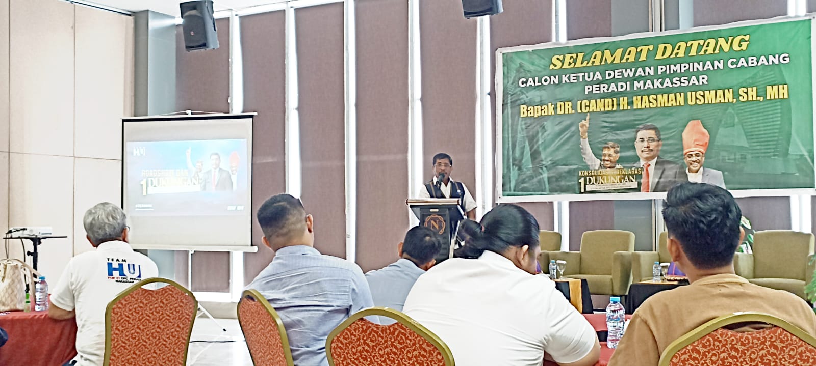 Dr (Cand) H. Hasman Usman bukan sosok asing di lingkungan Peradi. Dua periode menjabat sebagai Sekretaris DPC Peradi Cabang Makassar, ia dikenal sebagai advokat yang berdedikasi dan aktif dalam memberikan bantuan hukum, khususnya bagi masyarakat yang kurang mampu. Kini, dengan visi besar untuk memajukan Peradi Sulsel, ia maju sebagai Calon Ketua DPC Peradi Makassar dengan nomor urut 01.
