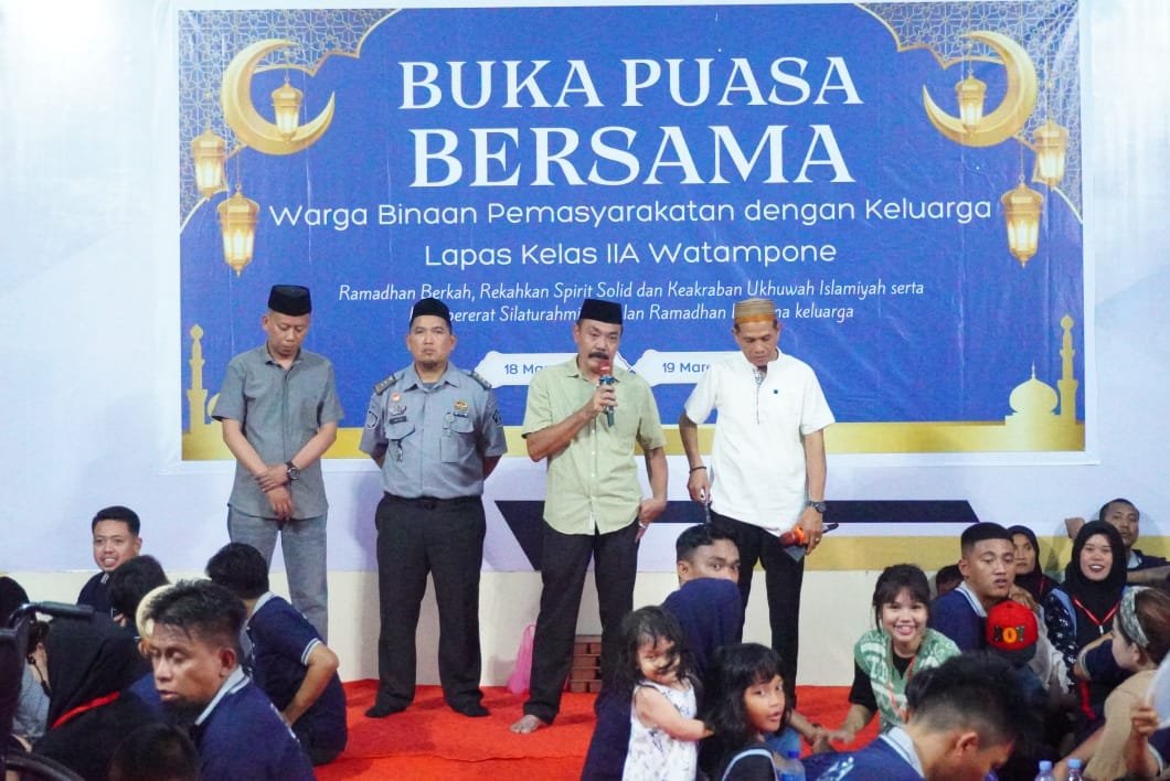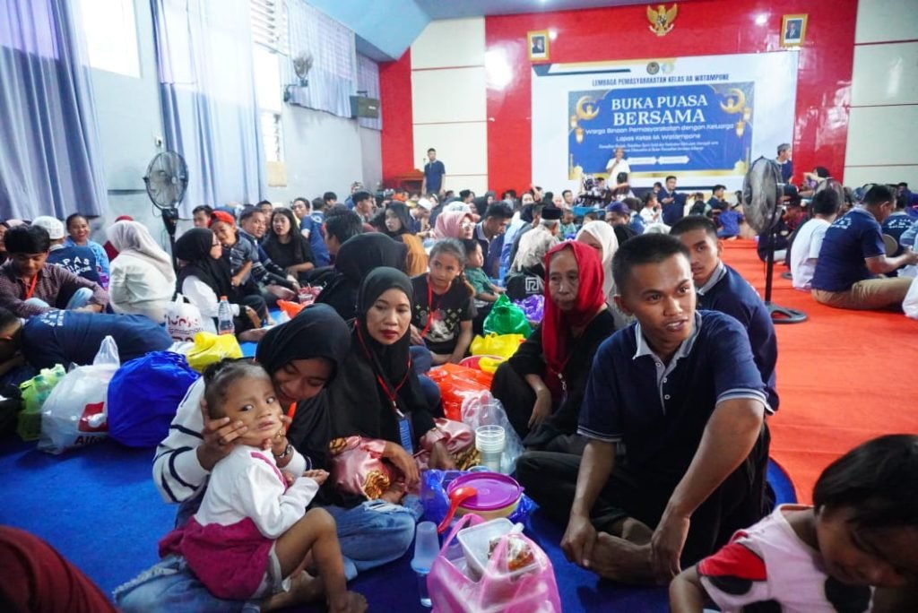 BONE–Suasana haru sekaligus bahagia mewarnai Lembaga Pemasyarakatan (Lapas) Kelas IIA Watampone pada acara buka bersama antara warga binaan dan keluarga mereka. Kegiatan yang berlangsung di Aula Lapas Watampone dan Ruang Kunjungan ini menjadi salah satu inisiatif Lapas Watampone untuk menghadirkan momen kebahagiaan dan mempererat hubungan kekeluargaan di bulan suci Ramadan. (18/03/2024)