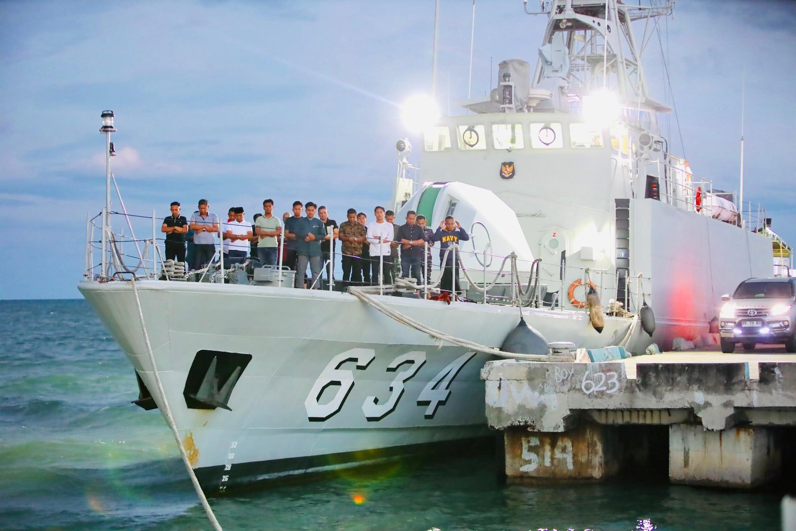 Namun, ada momen yang lebih menyentuh dari sekadar silaturahmi. Di senja hari, di antara riuh ombak dan langit jingga perbatasan, Bupati Andi Asman memilih menunaikan shalat Magrib berjemaah di atas KRI HIU kapal milik TNI AL yang tengah bersandar di perairan Sebatik, bersebelahan langsung dengan wilayah Tawau, Malaysia. Suasana hening seketika menyelimuti geladak kapal. Hembusan angin laut dan lantunan doa dari imam seolah menyatu, menegaskan makna spiritual dari perjalanan ini.