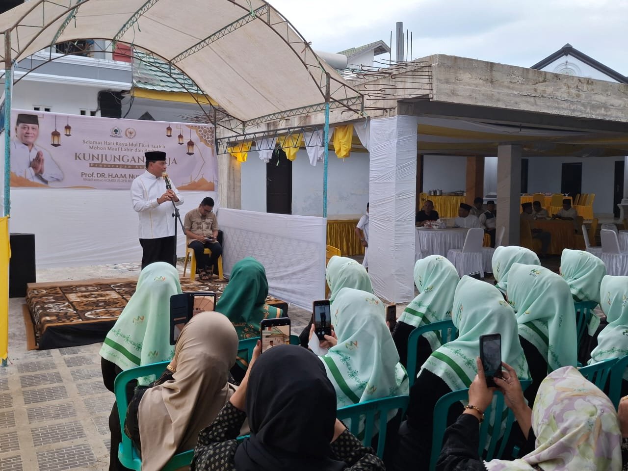 Dalam sambutannya, Prof. Dr. A.M. Nurdin Halid mengungkapkan rasa syukur bisa kembali ke Bone dan bertemu dengan masyarakat yang telah mendukungnya dalam perjalanan politik.