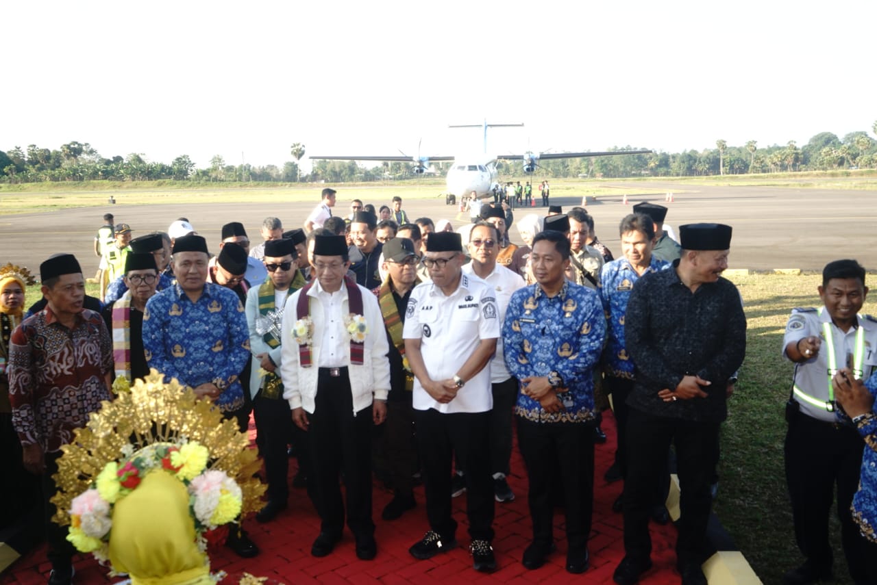 BONE – Menteri Agama Republik Indonesia, Prof. Nasaruddin Umar, memanfaatkan momentum penerbangan perdana rute Makassar-Bone untuk melakukan kunjungan kerja, Rabu (1/10/2025). Pesawat ATR 72-500 milik Fly Jaya yang membawa rombongan menteri lepas landas dari Bandara Sultan Hasanuddin, Maros, dan mendarat mulus di Bandara Arung Palakka Bone pada pukul 16.30 Wita.