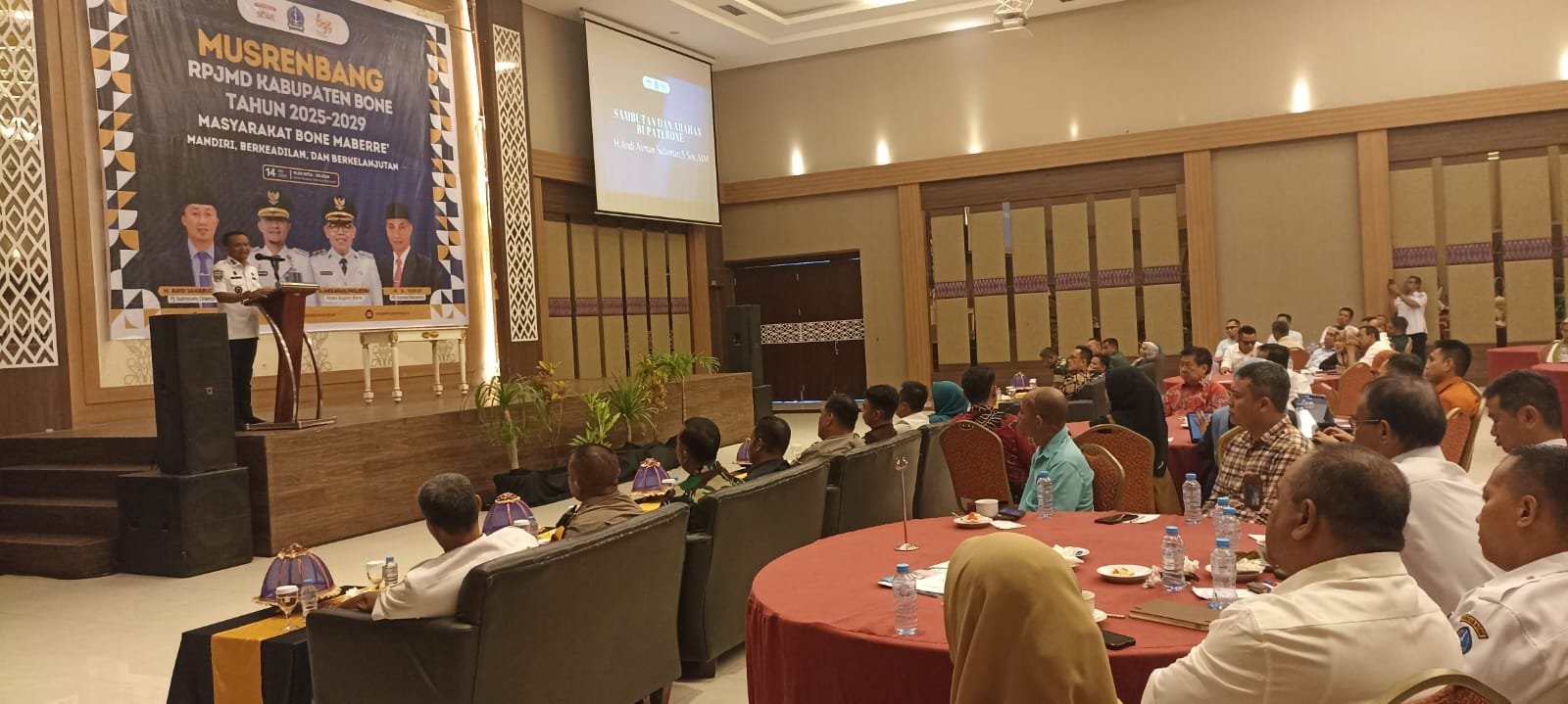 BONE–Dalam suasana penuh semangat pembangunan, Bupati Bone H. Andi Asman Sulaiman, S.Sos., MM secara resmi membuka kegiatan Musyawarah Perencanaan Pembangunan (Musrenbang) RPJMD Kabupaten Bone Tahun 2025–2029 di Ballroom Novena Hotel, Rabu, 14 Mei 2025. Acara strategis tersebut menjadi titik tolak bagi lahirnya arah pembangunan Kabupaten Bone lima tahun ke depan dengan mengusung visi besar: Bone Maberre (Mandiri, Berkeadilan, dan Berkelanjutan).