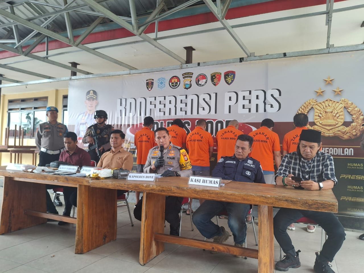 “Kita amankan 1,244 gram dengan enam tersangka. Ini adalah kasus penyalahgunaan narkoba dengan barang bukti terbanyak sepanjang tahun ini di Bone,” ujar Erwin Syah didampingi oleh Kasat Narkoba Polres Bone, Iptu Aswar, dan Kasi Humas Polres Bone, Iptu Rayendra.