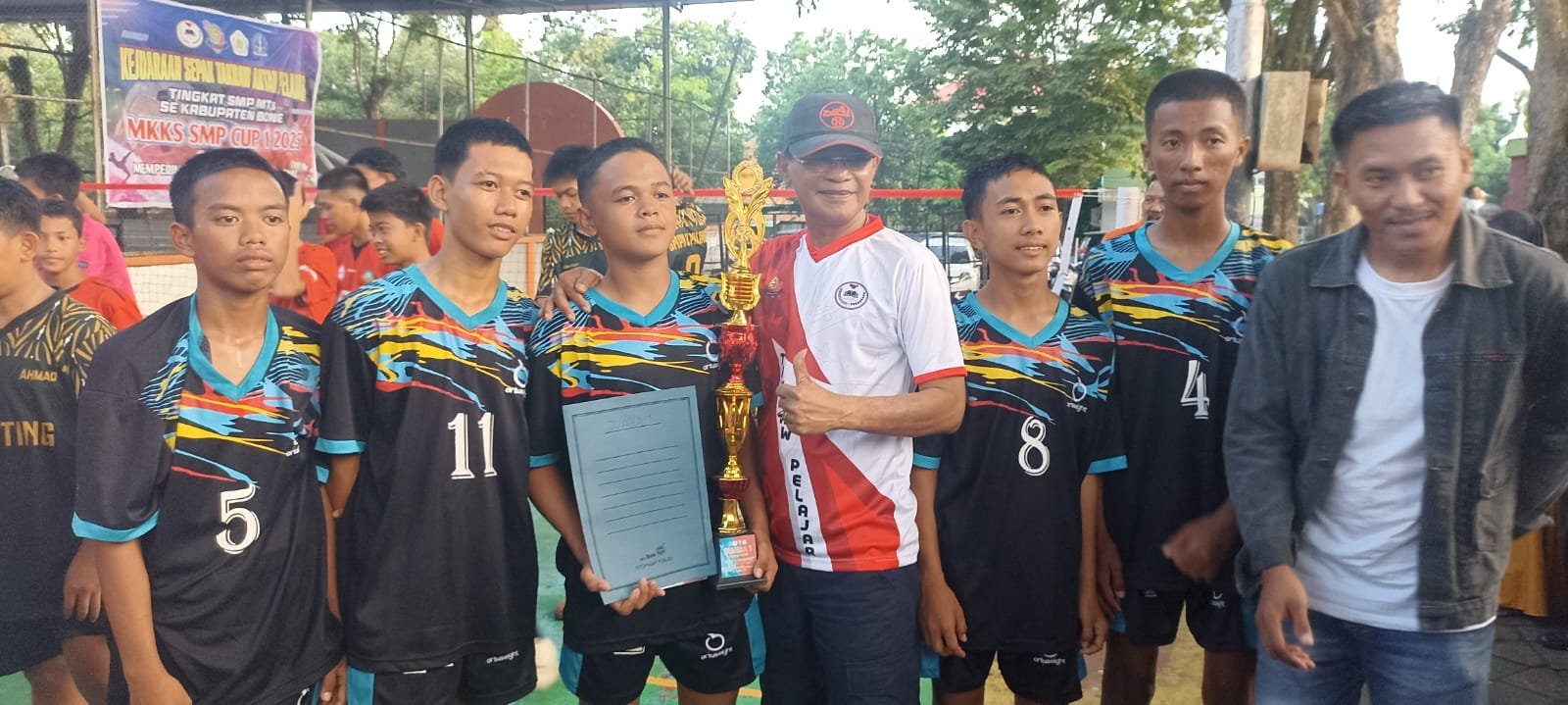 BONE–Lapangan Sepak Takraw Merdeka Watampone bergemuruh. Riuh sorak penonton menggema ketika satu per satu bola melayang tinggi, disambut akrobatik oleh kaki-kaki terlatih anak-anak SMP. Sorotan mata tertuju pada partai final Kejuaraan Sepak Takraw Antar Pelajar tingkat SMP/MTs se-Kabupaten Bone, yang menjadi penutup meriah MKKS SMP Cup 1 2025 ajang perdana persembahan Musyawarah Kerja Kepala Sekolah (MKKS) SMP Kabupaten Bone dalam rangka memperingati Hari Pendidikan Nasional.
