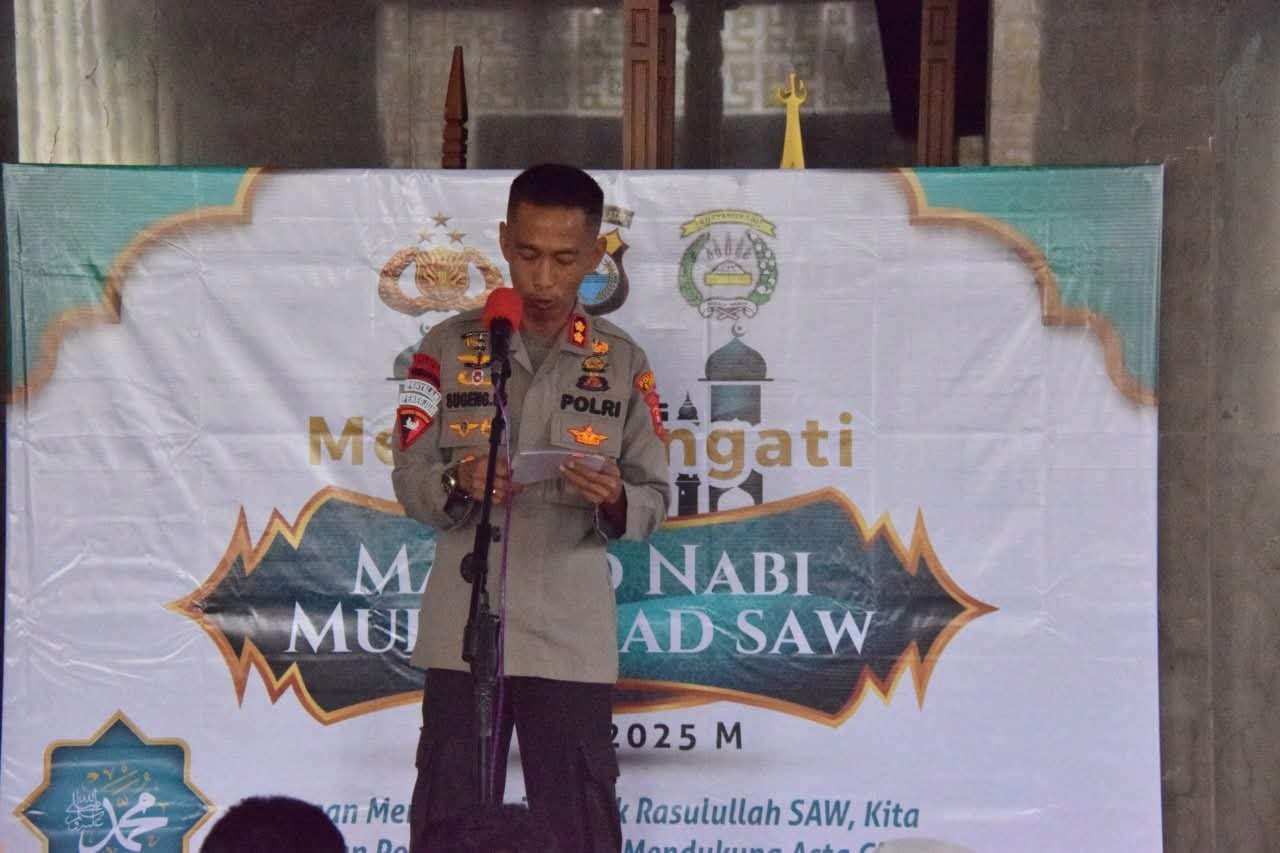 Dalam sambutannya, AKBP Sugeng Setio Budhi menekankan bahwa peringatan Maulid tidak boleh sekadar dipandang sebagai tradisi tahunan. Lebih dari itu, ia mengajak seluruh personel menjadikannya sebagai refleksi dan pengingat untuk menghidupkan kembali nilai-nilai ajaran Nabi.