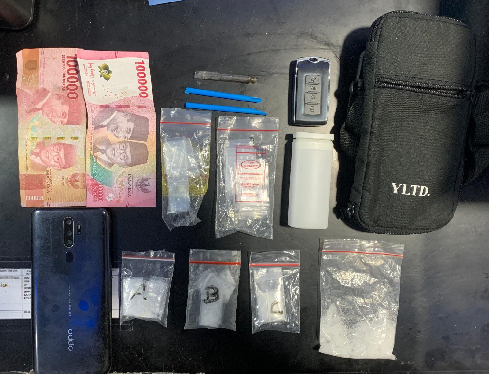 Dalam penggerebekan di rumah pelaku, polisi menemukan barang bukti sabu-sabu dalam jumlah cukup banyak, antara lain: