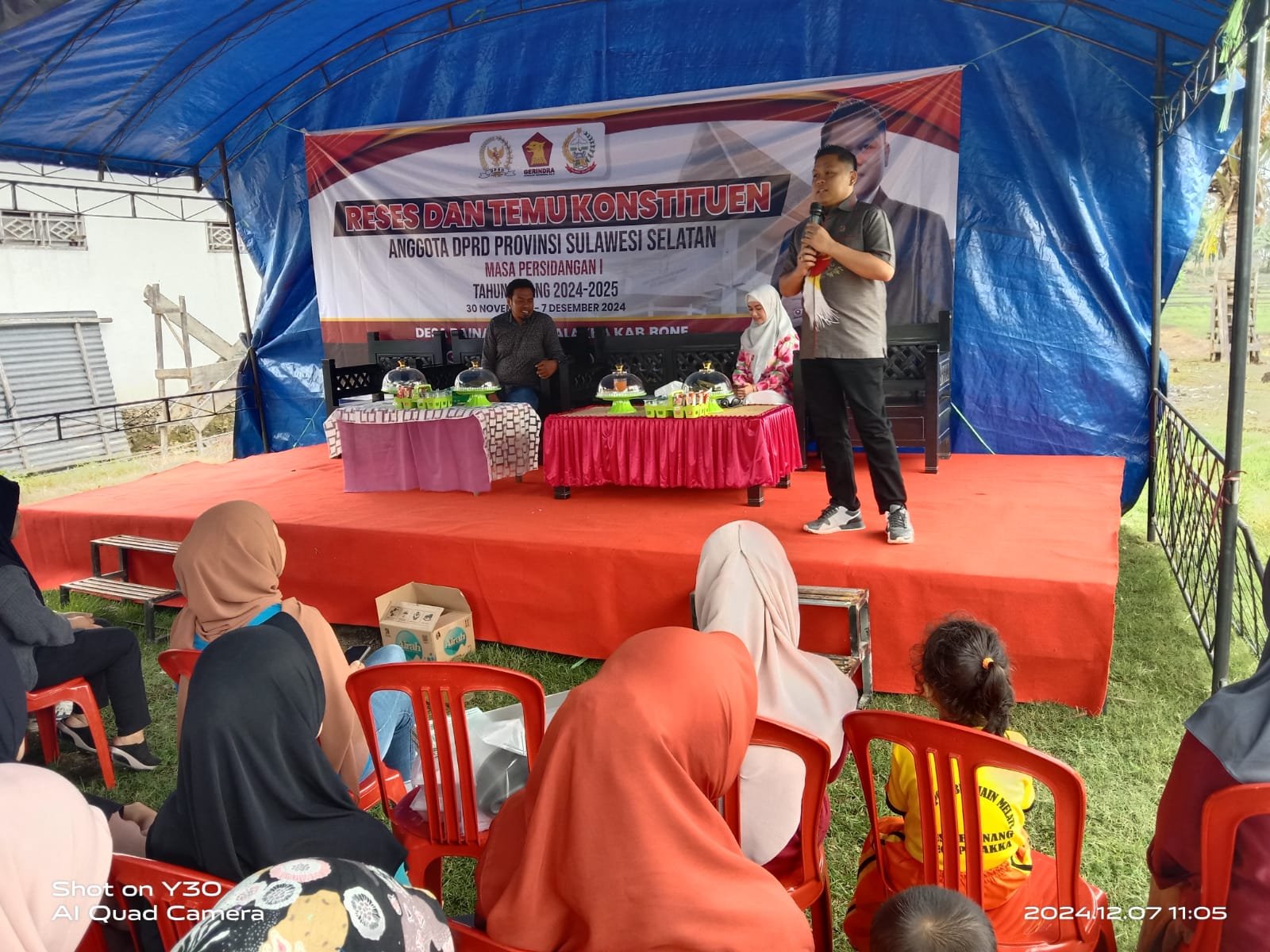 BONE–Masa reses menjadi momen yang dimanfaatkan oleh Yasir Machmud, SE, MSi, anggota DPRD Provinsi Sulawesi Selatan sekaligus Wakil Ketua DPRD, untuk turun langsung ke masyarakat Kabupaten Bone. Reses masa sidang perdana tahun sidang 2024-2025 ini berlangsung dari 30 November hingga 7 Desember 2024 dengan enam titik kunjungan: Kecamatan Lamuru, Awangpone, Tanete Riattang Barat, Tanete Riattang Timur, Palakka, dan Kecamatan Bengo.