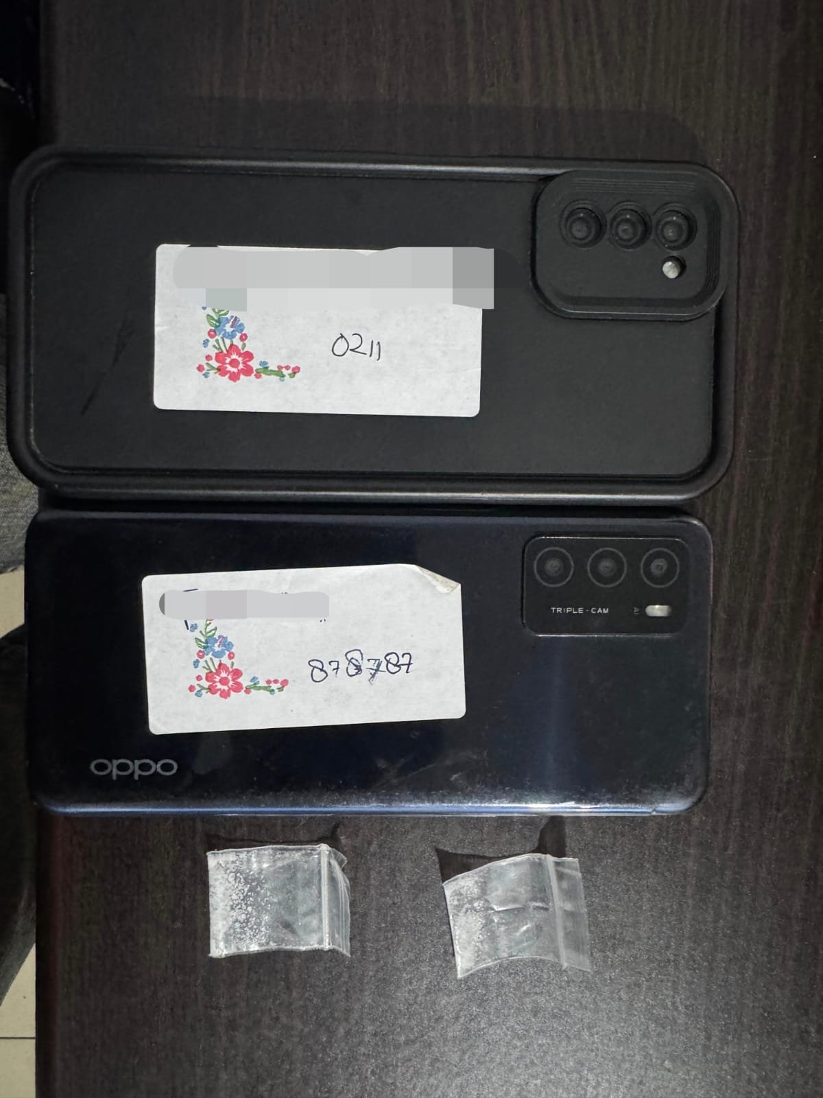 Dari hasil penggeledahan, petugas menemukan dua sachet plastik klip kecil berisi kristal bening yang diduga sabu, serta satu unit handphone OPPO A16 warna biru malam dari saku celana pelaku.
