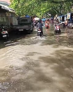 BONE–Gerah dan keluhan terdengar dari para pengguna jalan di kawasan Jl. Arif Rahman Hakim, tepatnya di pinggir sungai Eks Pasar Sentral Watampone. Drainase yang tersumbat oleh timbunan sampah menyebabkan air hujan tak tertampung, menciptakan genangan yang melumpuhkan sebagian akses jalan utama di kota Watampone.