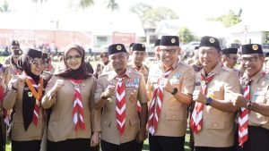 Bupati juga menegaskan pentingnya semboyan yang melekat di setiap anggota Pramuka. “Saya Pramuka dan saya pemimpin, semboyan itu harus terpatri dalam setiap aktivitas kita,” tegasnya dengan suara mantap, disambut tepuk tangan peserta apel.