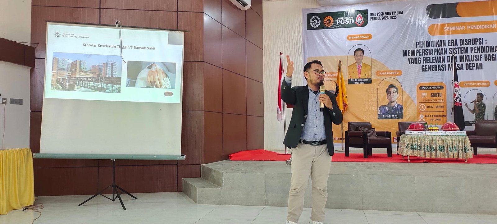 BONE–Seminar Pendidikan Program Studi Pendidikan Guru Sekolah Dasar (PGSD) Universitas Negeri Makassar (UNM) Bone tahun 2024 berlangsung dengan sukses, menghadirkan narasumber inspiratif yang membahas tema sentral “Pendidikan di Era Disrupsi” Sabtu, 14 Desember 2024.