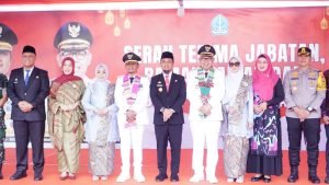 BONE–Gubernur Provinsi Sulawesi Selatan, Andi Sudirman Sulaiman, ST, menghadiri acara serah terima jabatan dari Pj. Bupati Bone, Andi Winarno Eka Putra, SSTP, MH, kepada Bupati Bone yang baru, H. Andi Asman Sulaiman, S.Sos., MM, serta Wakil Bupati Bone, Dr. H. Andi Akmal Pasluddin, MM di rumah jabatan Bupati Bone Minggu, 02 Maret 2025.