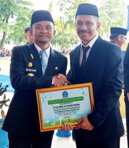 Penyerahan Piagam Penghargaan oleh Bupati Bone H. Andi Asman Sulaiman, S.Sos., MM kepada Kepala UPT SDI 10/73 Watang Palakka atas prestasinya meriah Juara I Kecamatan Tanete Riattang Barat Lomba Kebersihan Antar Sekolah tingkat Kabupaten