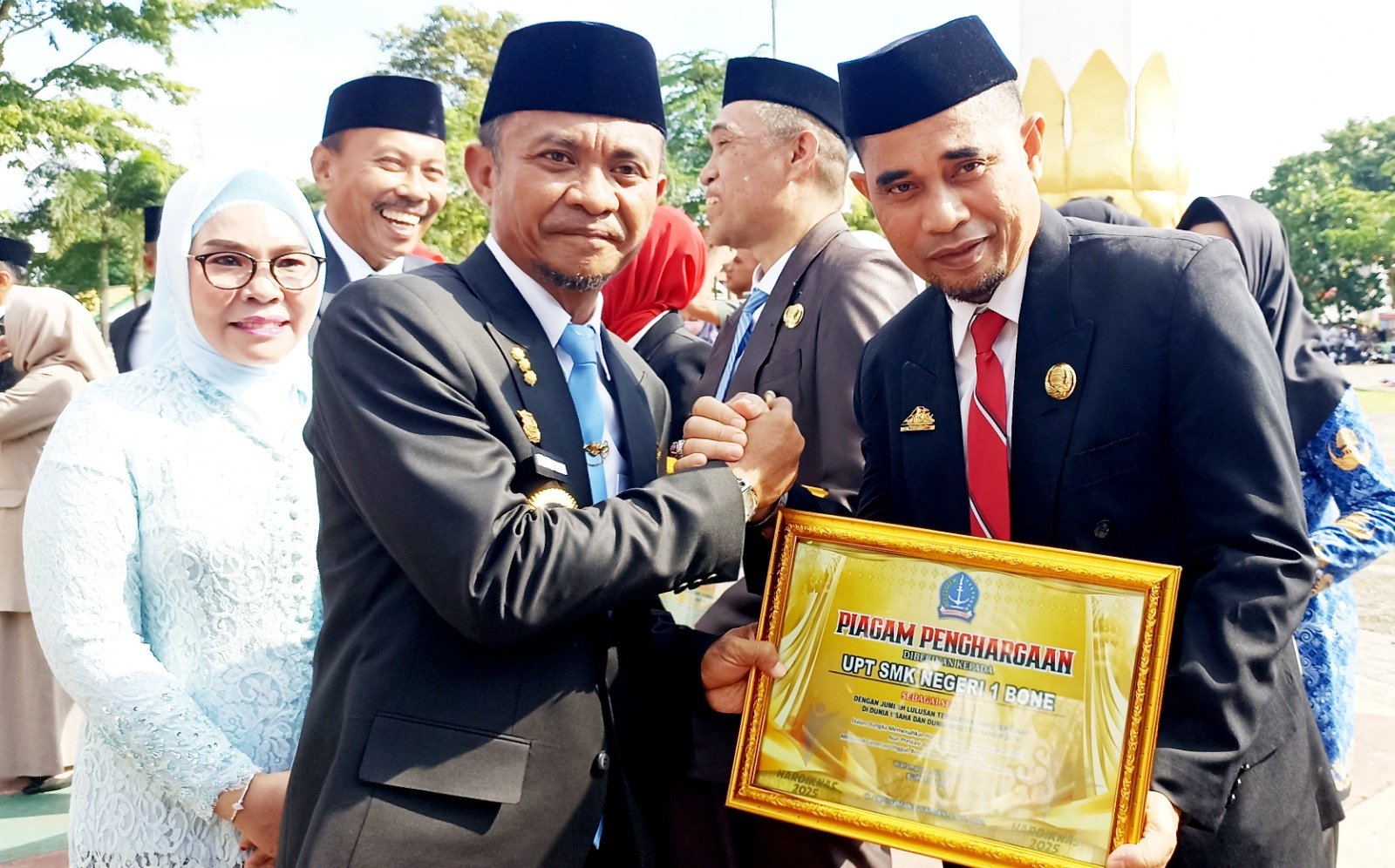 Penghargaan tersebut bukan penghargaan biasa. Pemerintah Kabupaten Bone secara resmi mengapresiasi SMKN 1 Bone sebagai sekolah dengan jumlah lulusan terbanyak yang terserap di dunia usaha dan dunia industri (DU/DI) pada tahun 2024. Prestasi ini menjadi bukti nyata dedikasi para pendidik dan keberhasilan sistem pendidikan vokasi dalam menjawab tantangan dunia kerja.