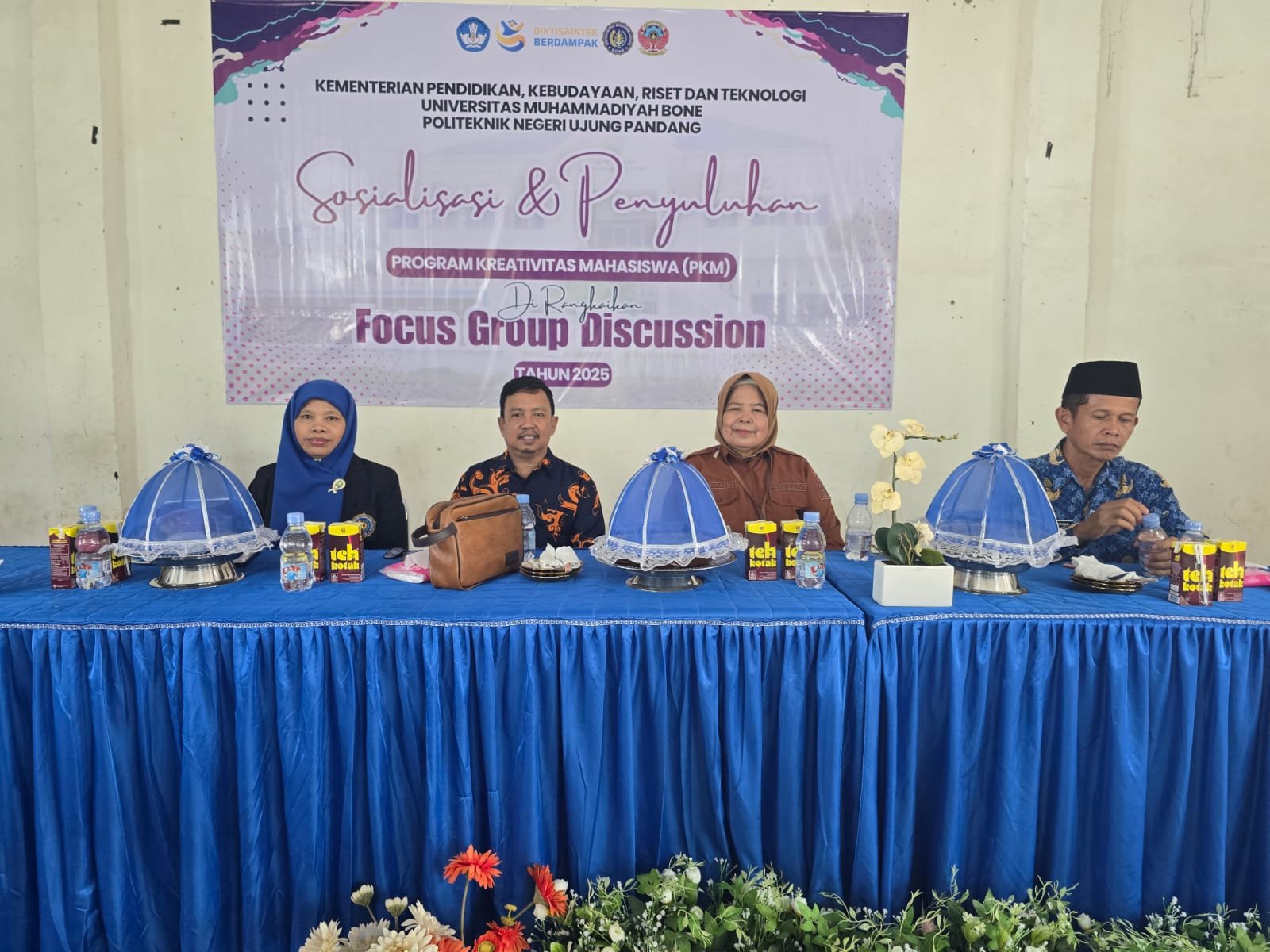 BONE — Hj. Andi Rasna, S.Pd., M.Pd., Plt. Kepala Bidang PAUD dan PNF/Kesetaraan Dinas Pendidikan Kabupaten Bone, menjadi pembicara dalam kegiatan Sosialisasi dan Penyuluhan Program Kreativitas Mahasiswa (PKM) yang dirangkaikan dengan Focus Group Discussion (FGD) di Palattae, Kecamatan Kahu, Kamis, 17 Juli 2025.