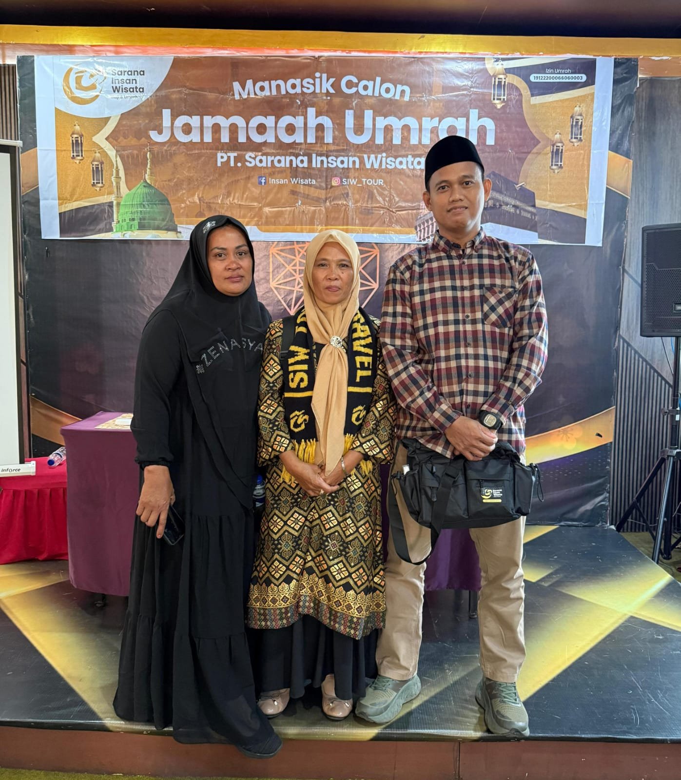 BONE – Kebahagiaan tampak terpancar dari wajah tiga warga Bone yang tengah menjalani manasik di Makassar melalui travel Sarana Insan Wisata (SIW). Mereka adalah calon jemaah umrah yang berangkat berkat hadiah dari Bupati Bone, H. Andi Asman Sulaiman, S.Sos., MM.