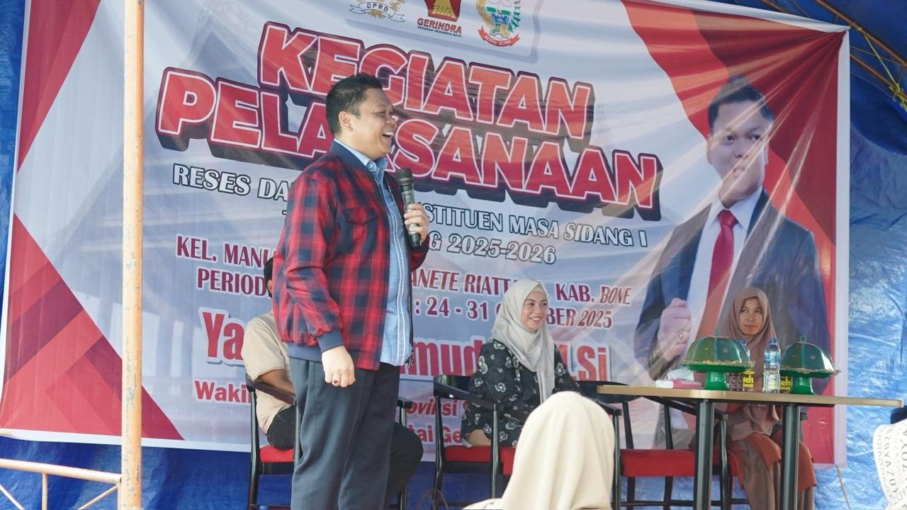 BONE – Suasana hangat penuh kebersamaan menyelimuti Jalan Merdeka, Kelurahan Manurunge, Kecamatan Tanete Riattang, Kabupaten Bone, Jumat sore (31/10/2025). Ratusan warga, tokoh masyarakat, dan pemuda setempat tampak antusias mengikuti kegiatan Reses Masa Persidangan I Tahun Sidang 2025/2026 yang digelar oleh Wakil Ketua DPRD Provinsi Sulawesi Selatan, Yasir Machmud, SE., M.Si.